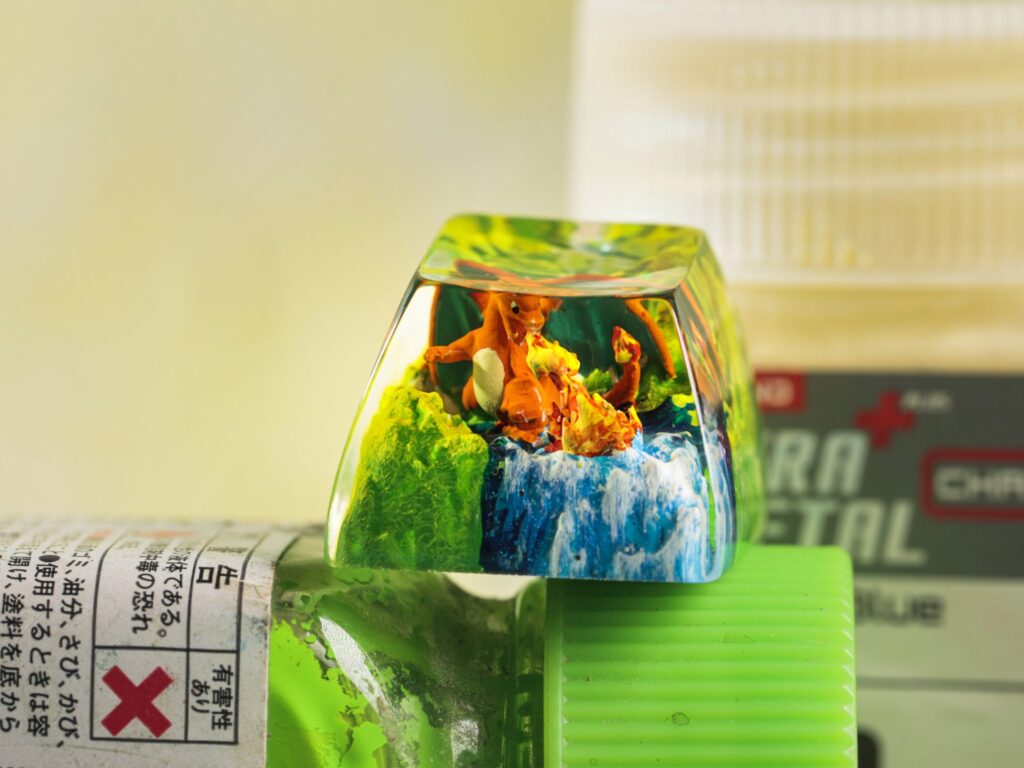 • Each keycap is meticulously hand-painted and sealed in crystal-clear resin, showcasing the fiery power of Charizard in every detail.