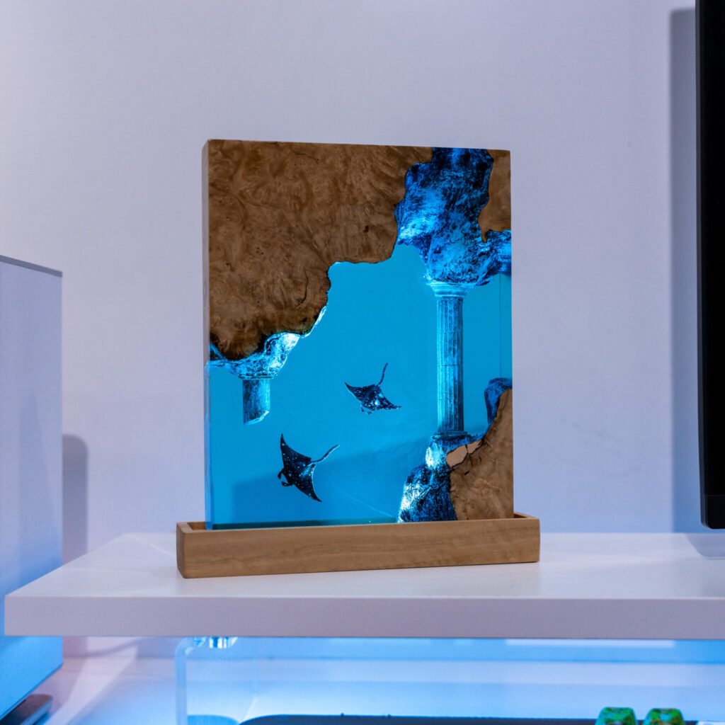 The ocean holds mystery, calm, and immense beauty — and BreakWooden transforms this inspiration into artisan lighting. These four lamps capture the graceful movement of manta rays and their underwater world, encased in transparent resin and mounted on natural wood bases. As one listing notes, “Resin Night Light is an interesting application of Epoxy Art” with “the path of light” carefully considered to produce realistic refraction effects.