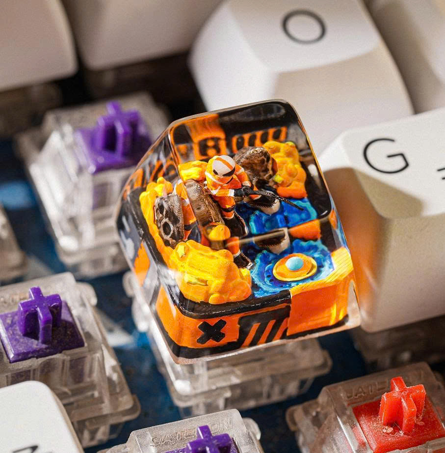 Astronaut – Orange Fishing Artisan Keycap: Miniature Art on Every Keystroke