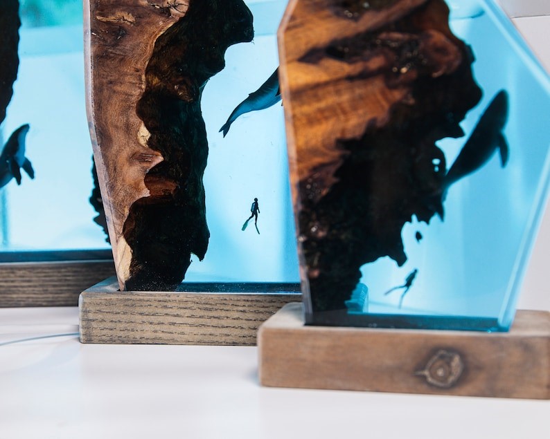 Immerse in the Depths: POLYON DEEP WHALE SEA Epoxy Lamp by Breakwooden