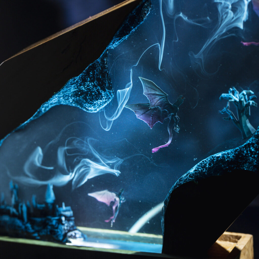 Magic Dragon Castle Resin Lamp – A Fantasy Masterpiece by Breakwooden