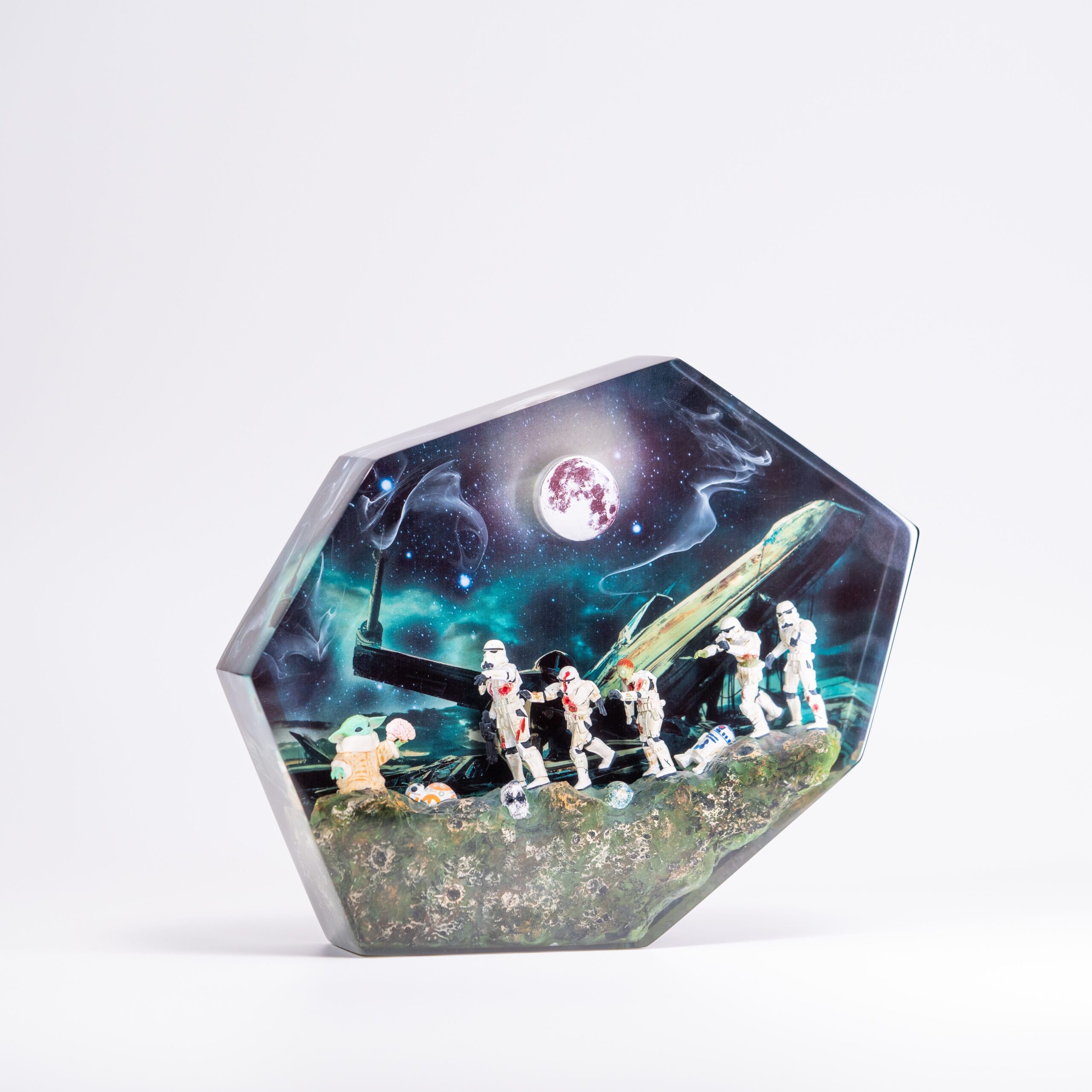 Step into the spooky world of our Alien & Zombie Astronauts Halloween Epoxy Lamp! This eerie lamp showcases handcrafted epoxy resin designs of alien beings and astronaut zombies, making it the perfect addition to your Halloween decor. Get yours now before it’s gone!