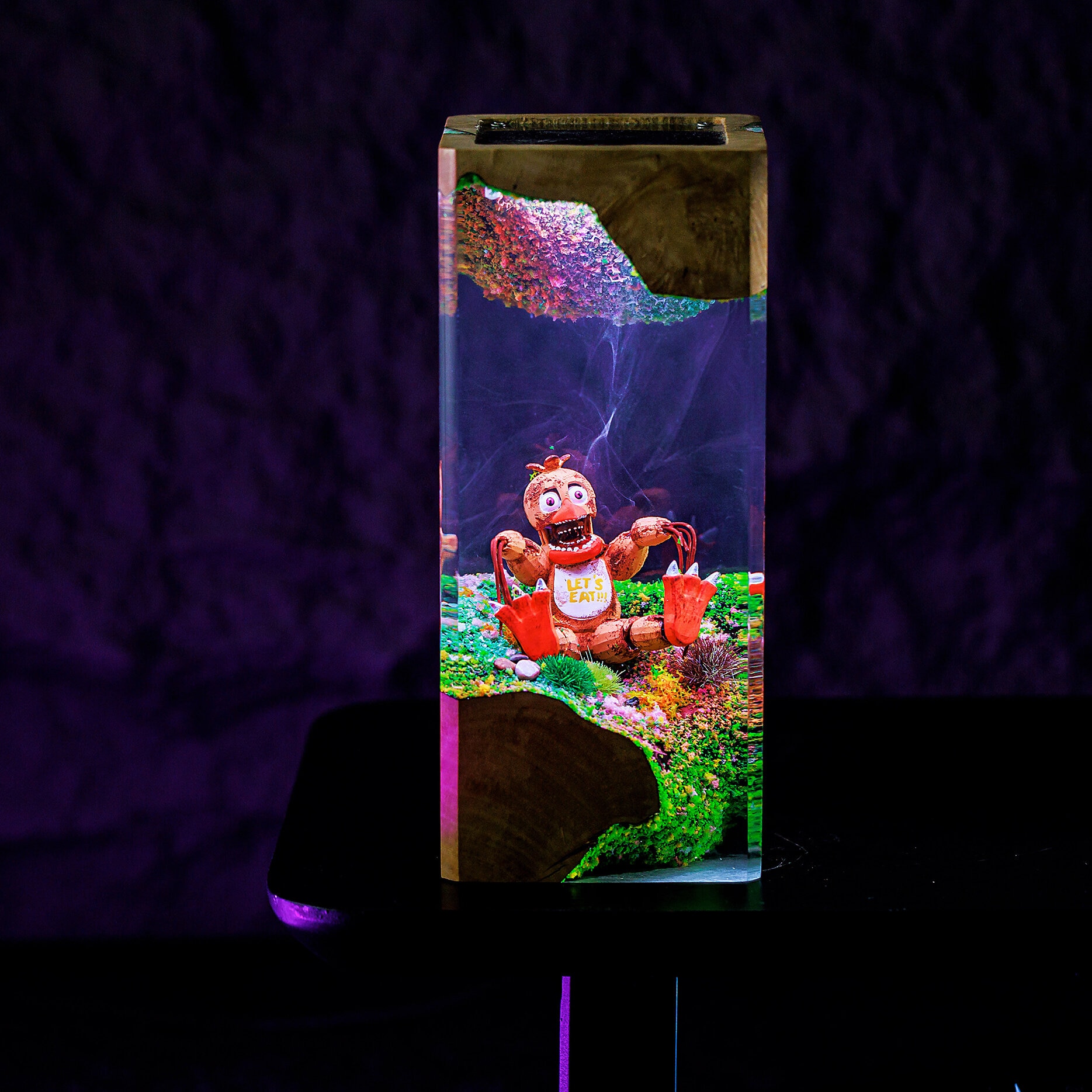 The Creepy Plushies Resin Lamp shares an eerie and unsettling vibe similar to the popular video game series, Five Nights at Freddy’s (FNAF). With its quirky design, it resonates with the eerie animatronic characters in FNAF, making it a whimsical addition to a fan’s collection of FNAF-inspired items. The lamp’s unconventional aesthetics offer a playful nod to the creepy and darkly humorous atmosphere of the game.