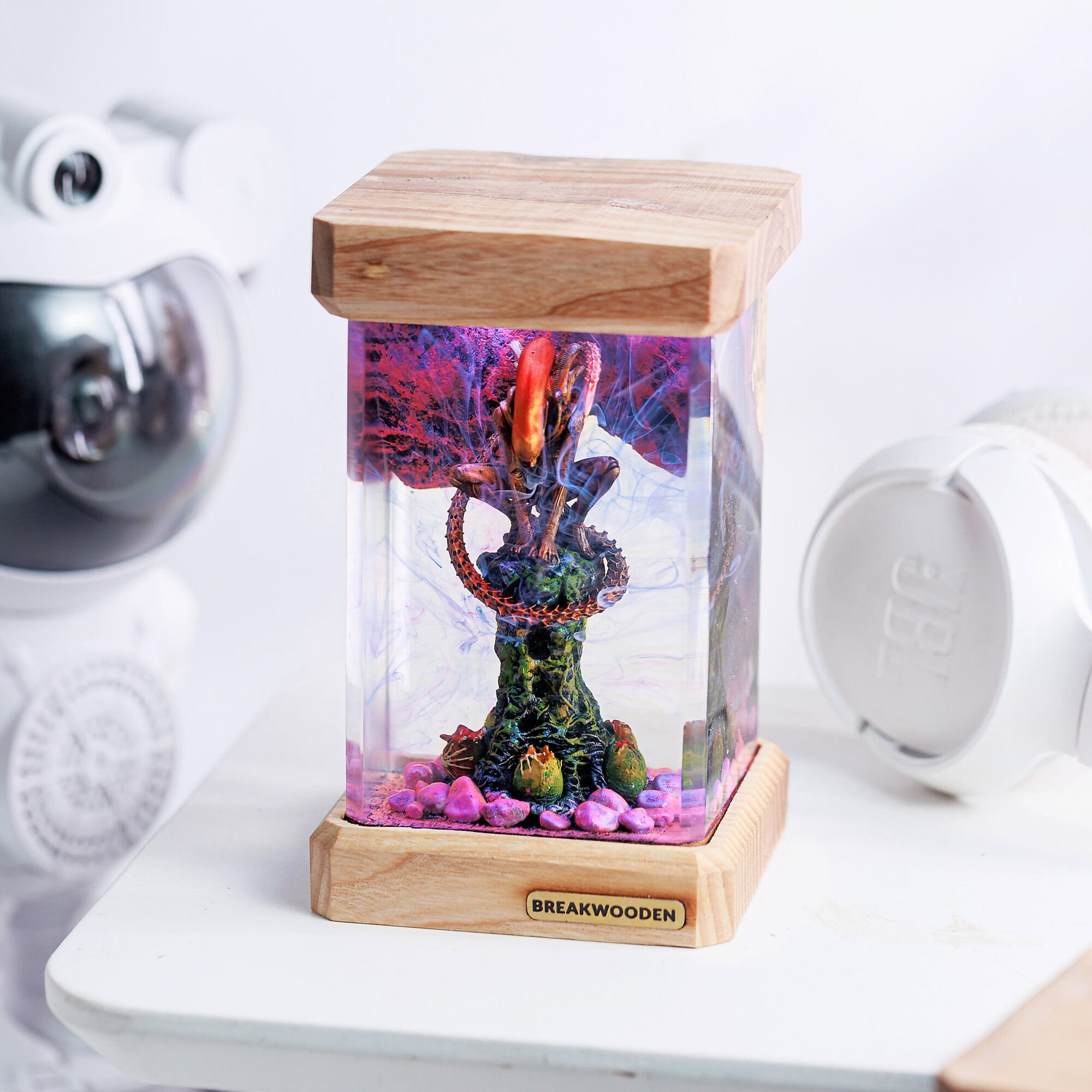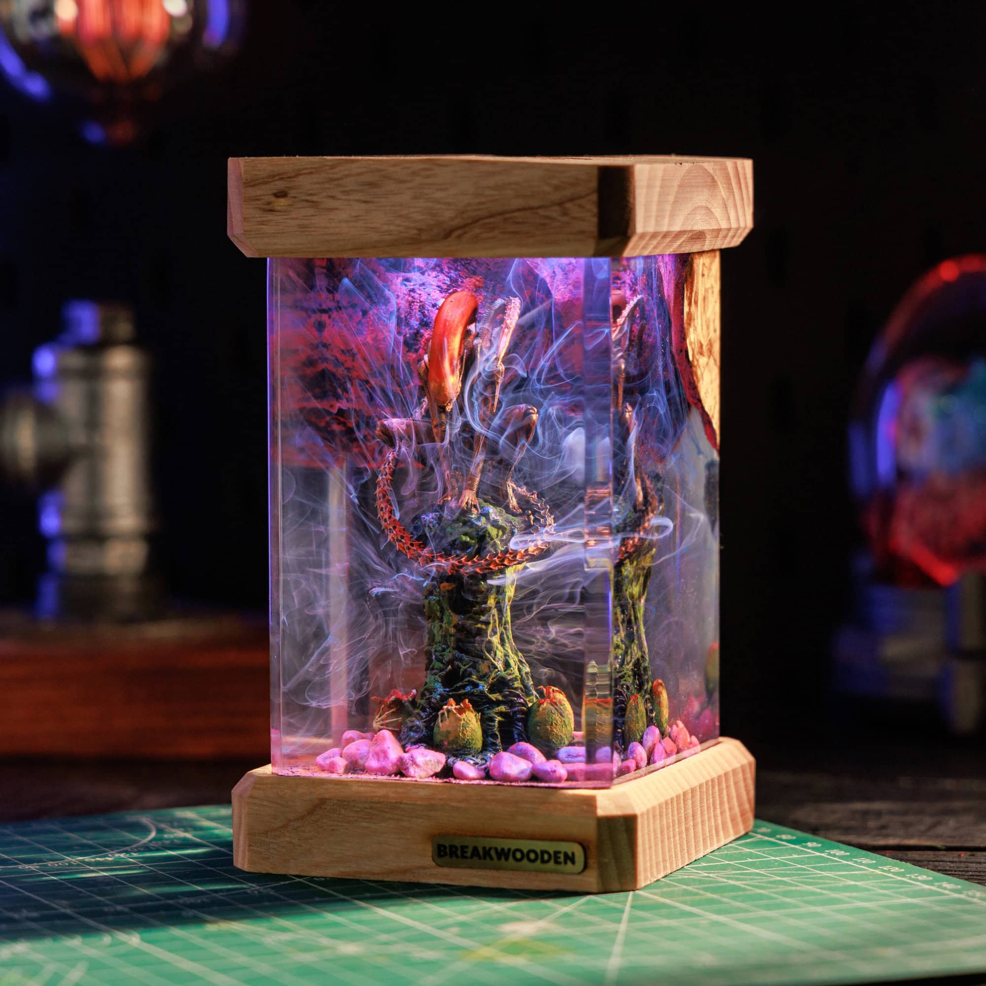 A Xenomorph resin lamp is a unique tribute to the iconic creature from the “Alien” franchise. Crafted with intricate detail, it captures the essence of the Xenomorph’s menacing design. When lit, it casts eerie shadows, creating a chilling ambiance perfect for horror enthusiasts and collectors alike.