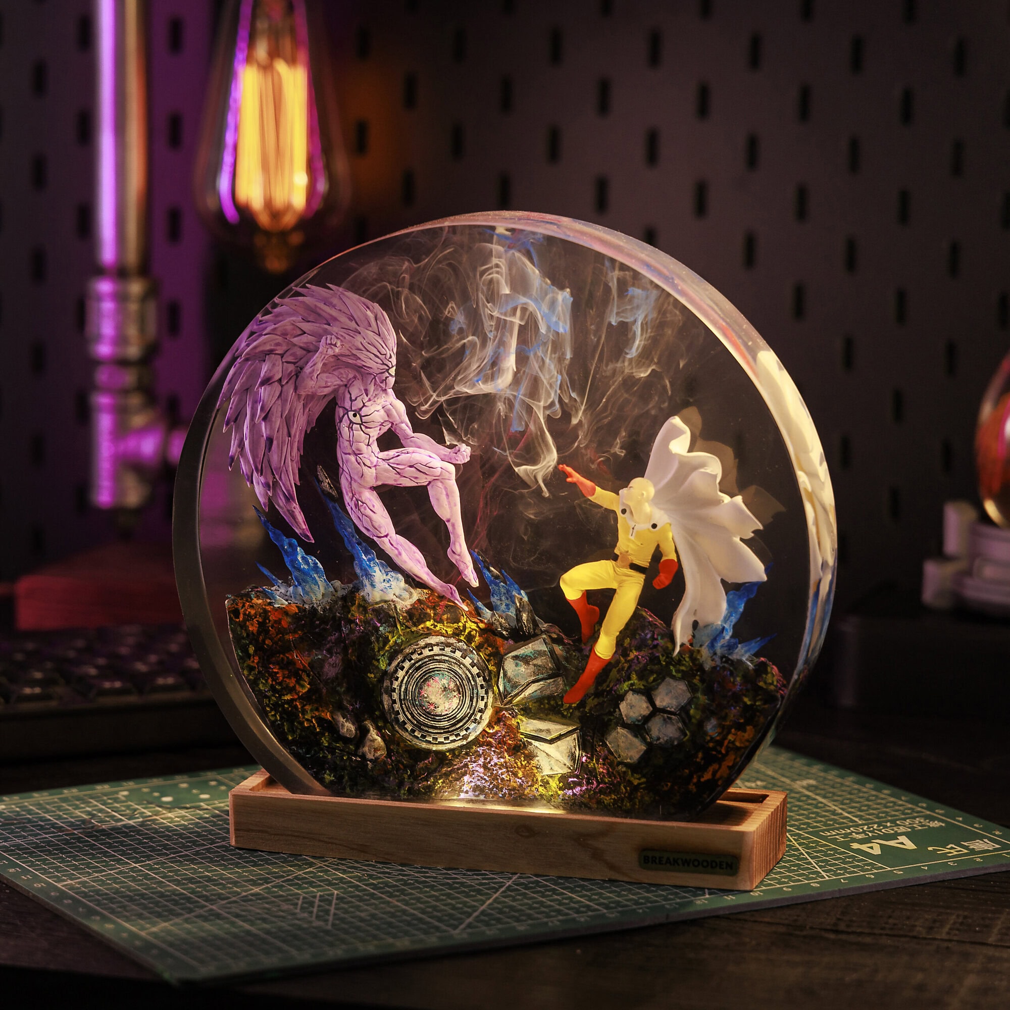 The One Pun.ch M.an resin lamp is a striking piece of décor inspired by the popular anime series “One Punch Man.” This lamp captures the essence of the show’s protagonist, Saitama, and brings anime culture into any space. It celebrates the anime with its intricate design and vibrant colors, making it a standout piece in any setting.