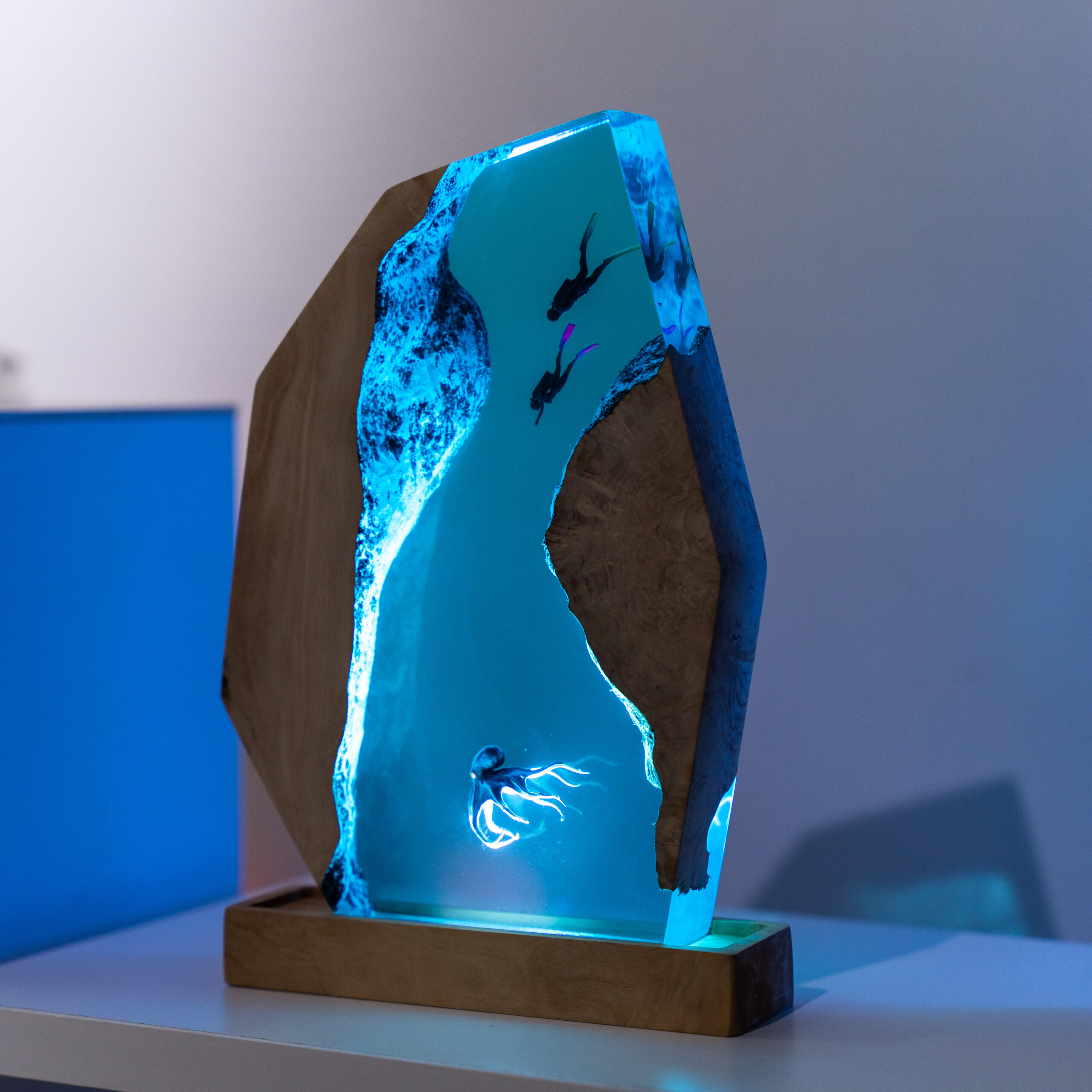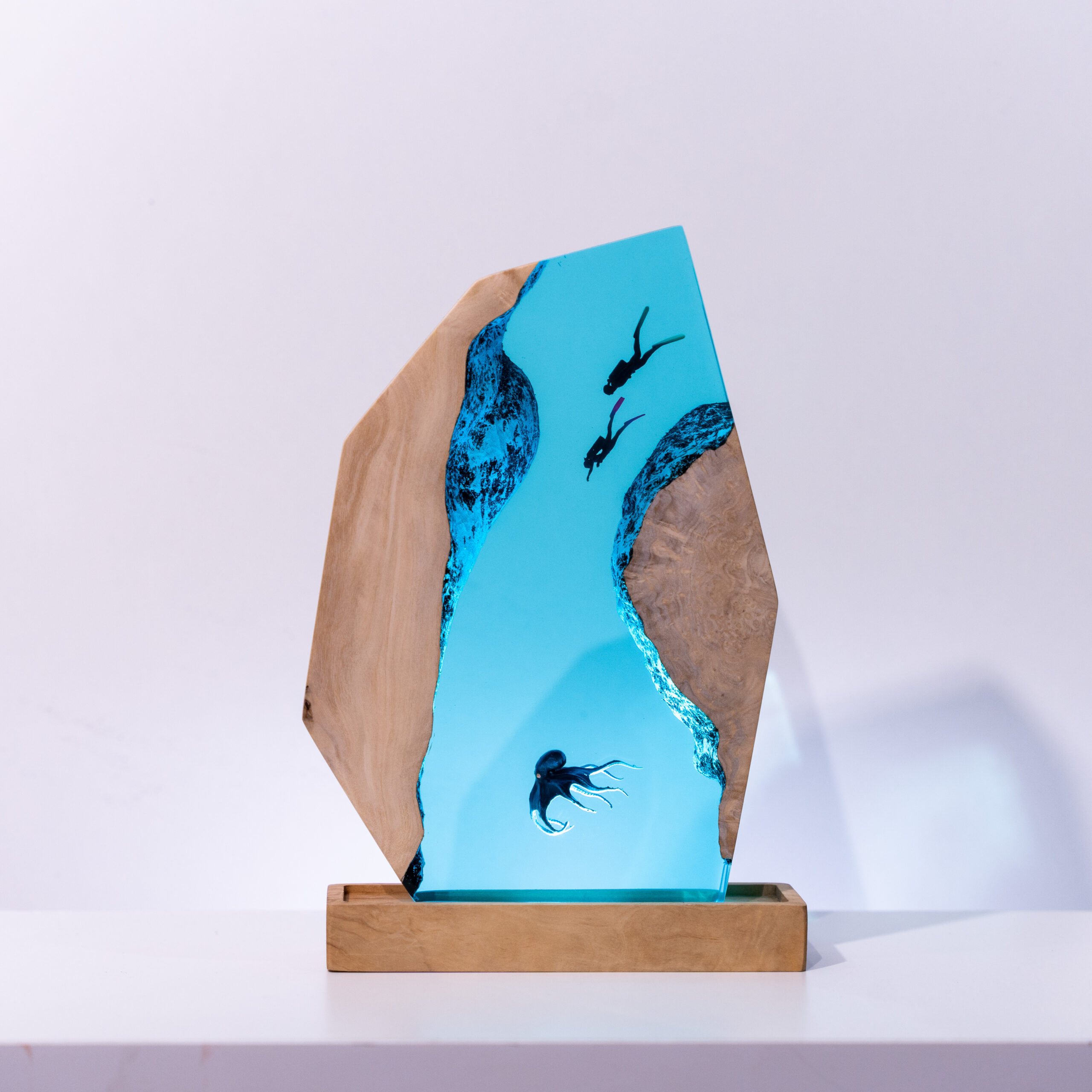 The Scuba Diver Resin Lamp is a unique piece of art that combines form and function. Crafted from high-quality resin, it depicts a scuba diver in intricate detail, creating a lifelike underwater scene. The lamp doubles as a light source, emitting a warm glow that highlights the sculpture’s details. Ideal for ocean lovers, nautical themes, or art enthusiasts, this lamp adds a touch of adventure to any space.