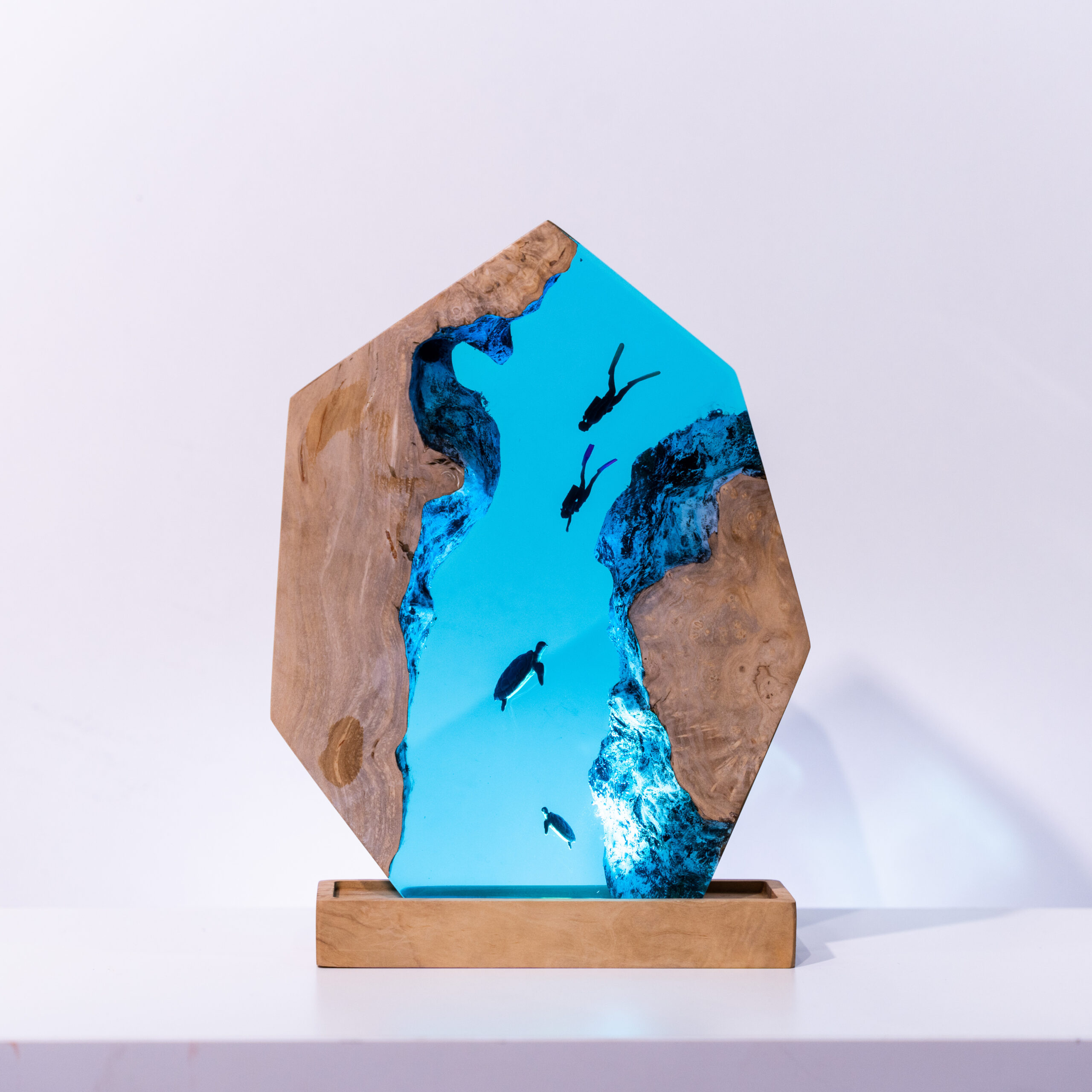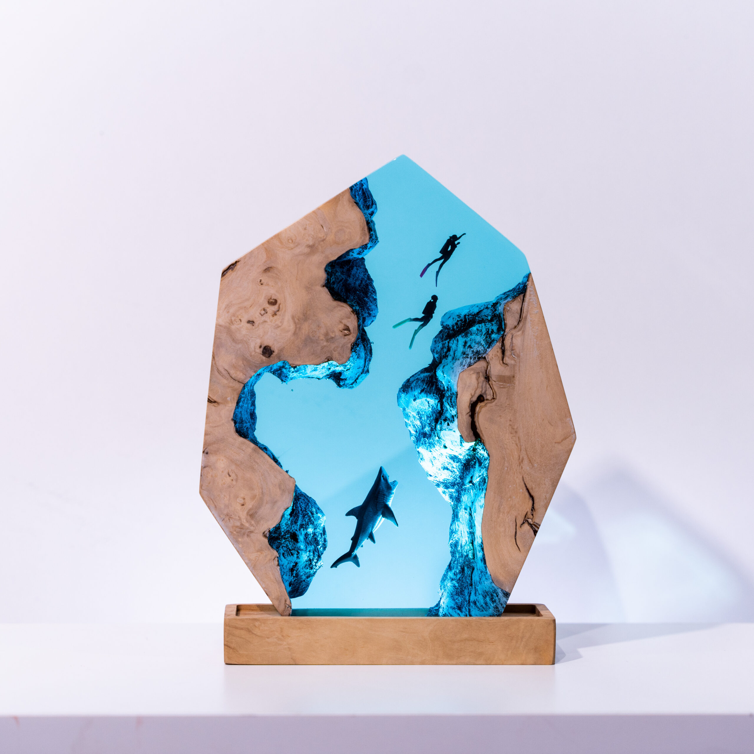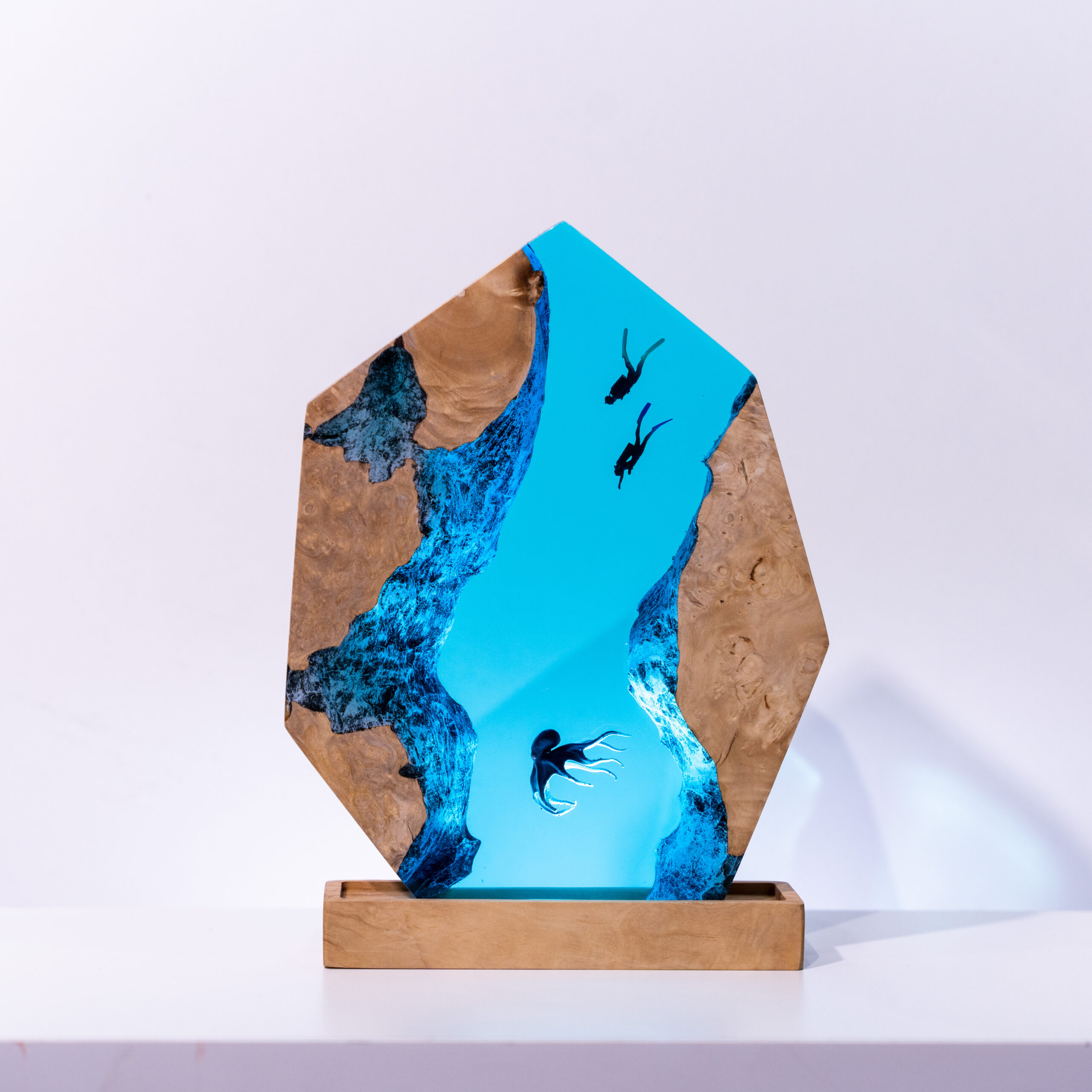 The Scuba Diver Resin Lamp is a unique piece of art that combines form and function. Crafted from high-quality resin, it depicts a scuba diver in intricate detail, creating a lifelike underwater scene. The lamp doubles as a light source, emitting a warm glow that highlights the sculpture’s details. Ideal for ocean lovers, nautical themes, or art enthusiasts, this lamp adds a touch of adventure to any space.