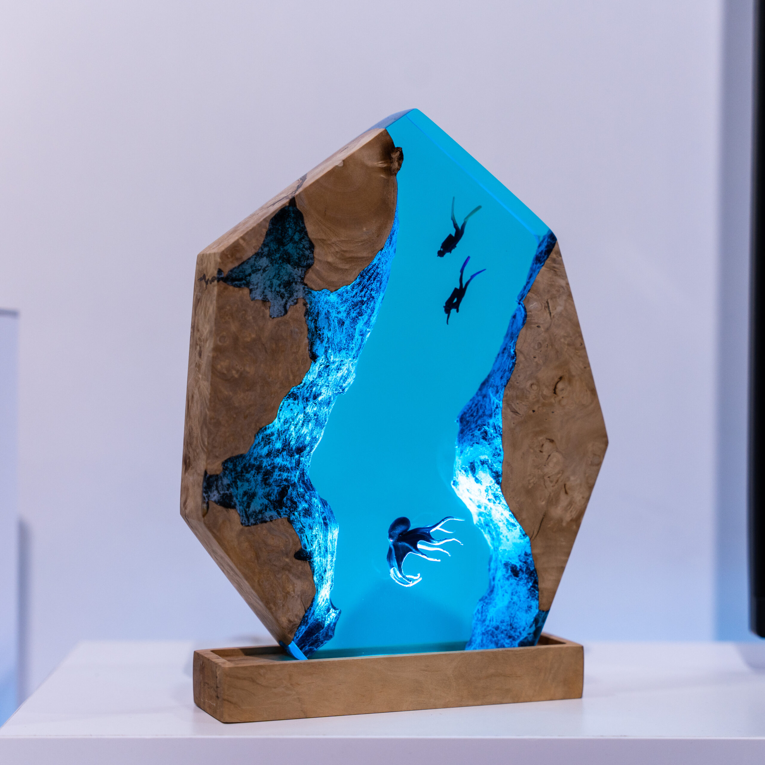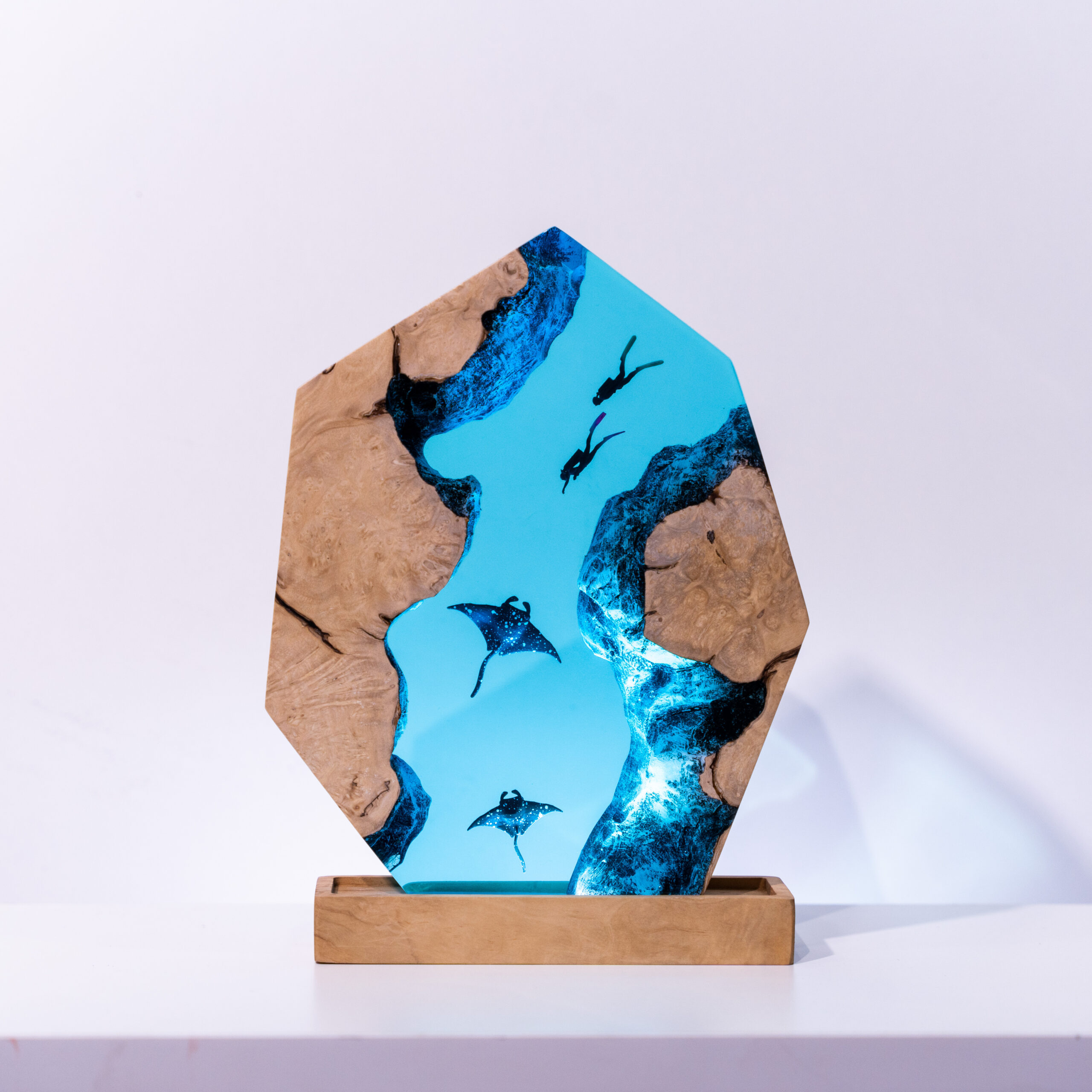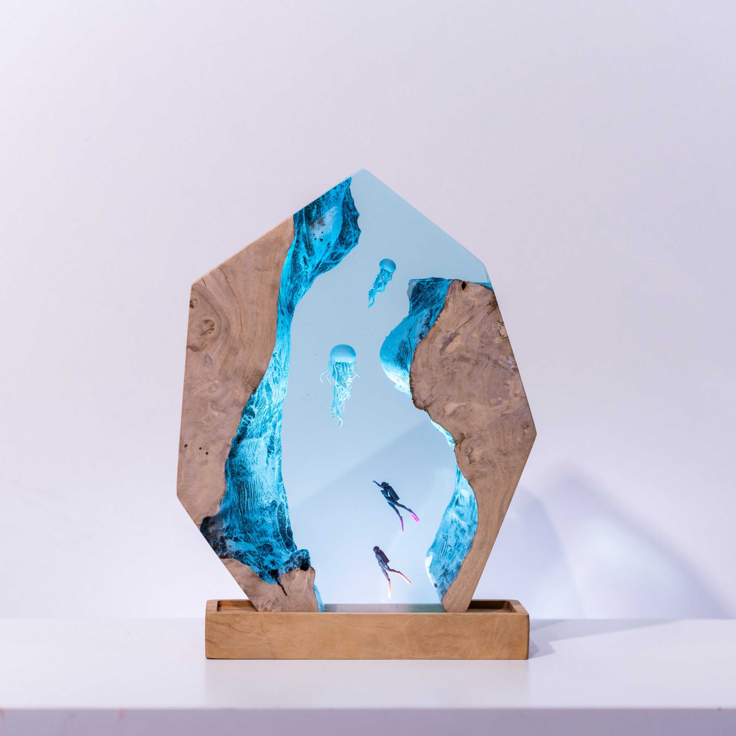 The Scuba Diver Resin Lamp is a unique piece of art that combines form and function. Crafted from high-quality resin, it depicts a scuba diver in intricate detail, creating a lifelike underwater scene. The lamp doubles as a light source, emitting a warm glow that highlights the sculpture’s details. Ideal for ocean lovers, nautical themes, or art enthusiasts, this lamp adds a touch of adventure to any space.