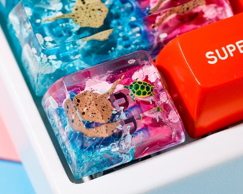 Every Ray Fish Artisan Keycap is made by skilled artisans using high-quality resin and alcohol ink painting techniques. Each fish, ripple, and color pattern is crafted with care, ensuring no two keycaps are exactly alike. The natural variations make every piece a small work of art for your desk.